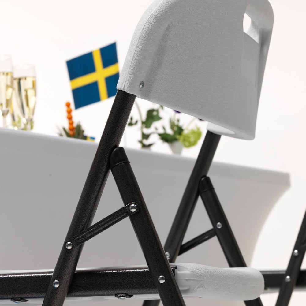 Våra klappstolar är utformade för att passa smidigt ihop med våra olika hopfällbara bord Kalasbordet, Fixbordet och Partybordet. Oavsett om du behöver sittplatser för en liten sammankomst eller ett stort evenemang är våra stolar den perfekta lösningen.
