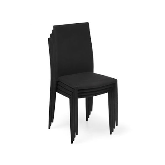 Partystolen 4 utmärker sig med sitt slitstarka PVC-säte och -rygg, tillsammans med en helsvetsad metallkonstruktion som garanterar stabilitet och lång livslängd.