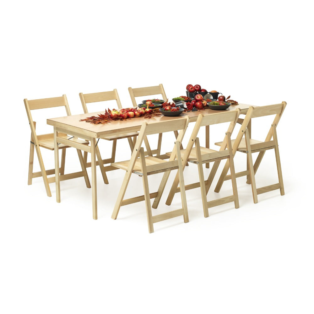 Denna massiva klappstol i trä är både bekväm, stadig och mycket hållbar. Stolen är testad och godkänd av SP och har en mycket god sittkomfort. Klappstolen passar utmärkt till vårt Fixbord, men fungerar självklart också till andra bord, eller i flertal utan bord för en gruppsittning.