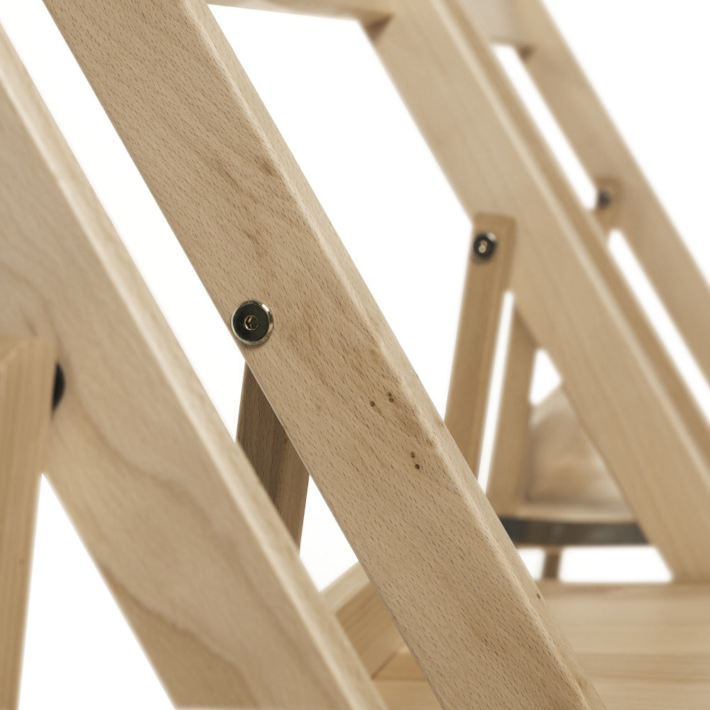 Klappstolen i trä är tillverkad i massiv bok med utmärkt sittkomfort. Denna fällbara stol tillverkas i bok natur och svartbets. Stolen kan hängas upp på vårt specialdesignade väggbeslag som rymmer två stolar/ beslag.